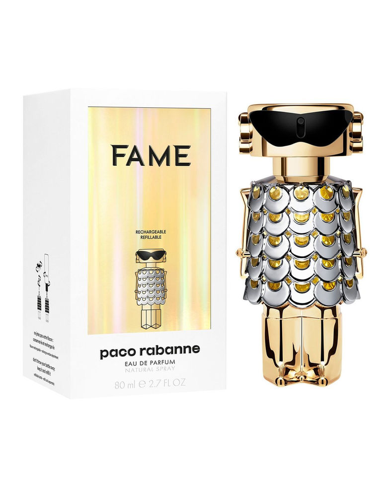 Inspirado em uma nova geração de mulheres empoderadas e irreverentes, Fame Rabanne Eau de Parfum entrega uma identidade olfativa envolvente e cativante. Sua composição floral frutada é sofisticada e luminosa, capaz de transformar qualquer momento em uma afirmação de estilo e personalidade.
